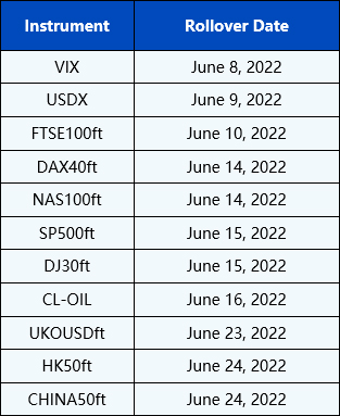CFD Rollover Notice for June