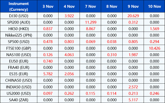 Please note the above data are subject to changes. Please refer to MT4/MT5 for details.