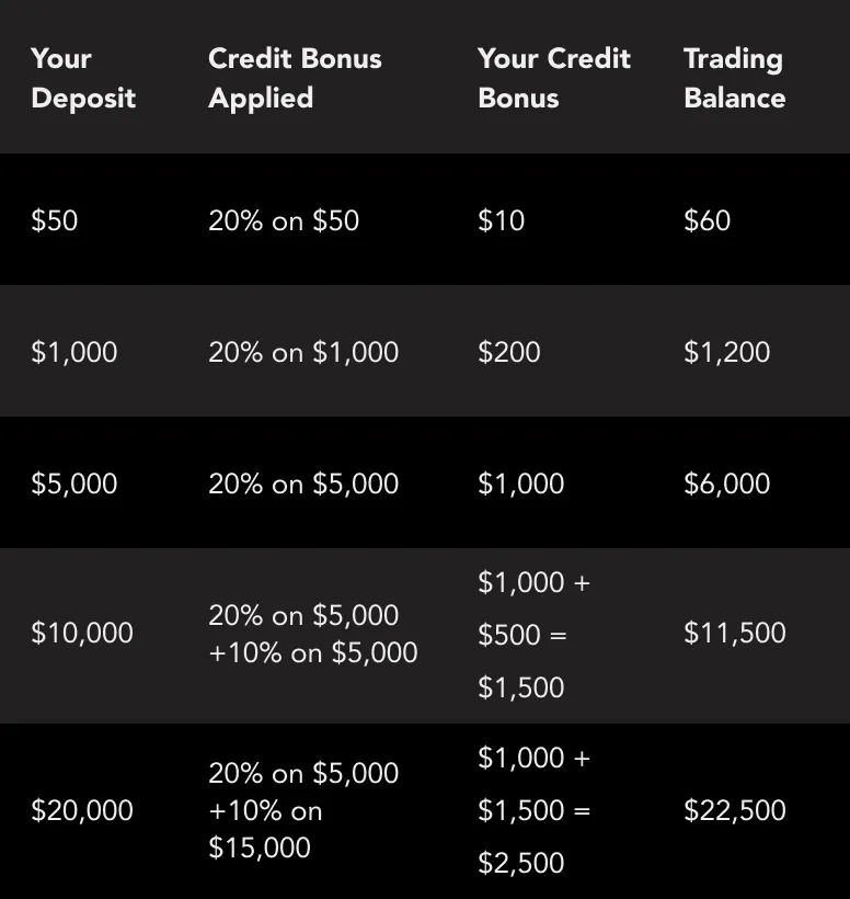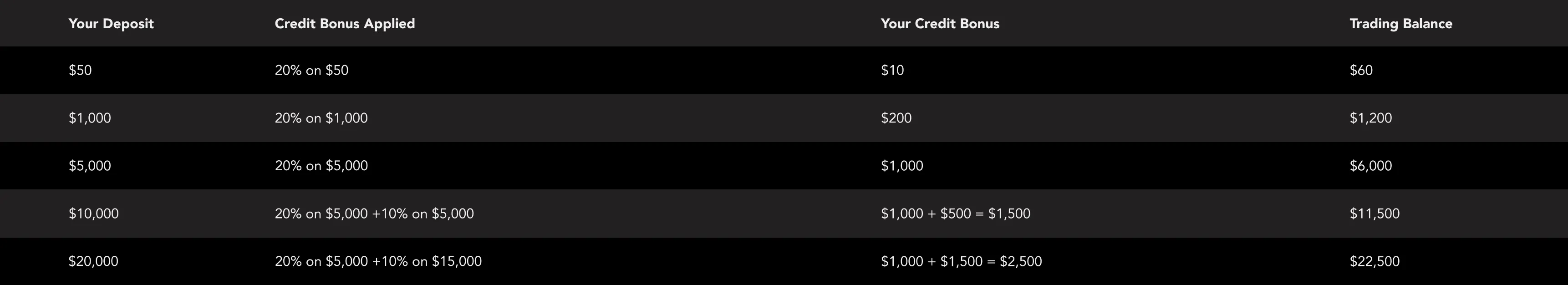 4.Eligible Clients (both new and existing clients), who meet the criteria set forth herein are able to receive credit bonuses or otherwise known as trading credit, equal to: